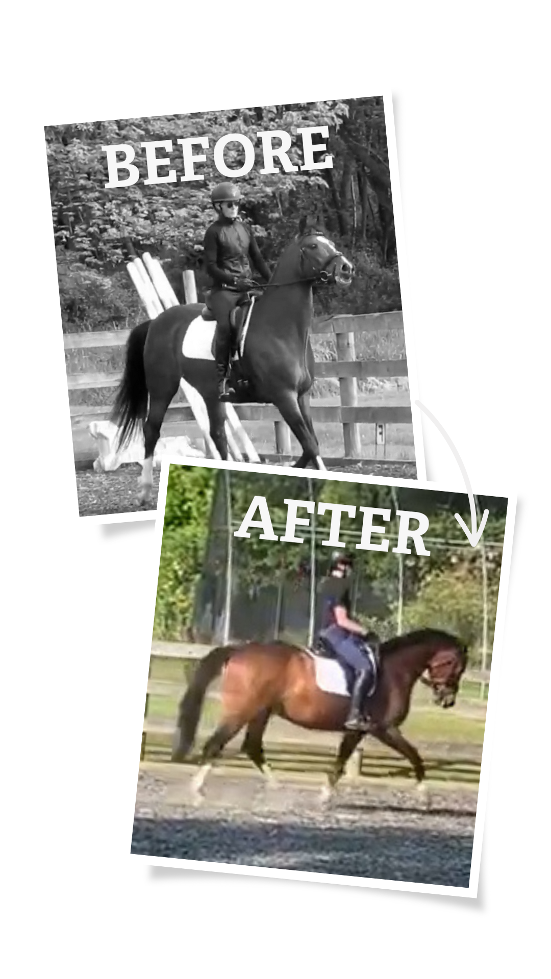 “Seriously I was amazed watching the comparison. It was such a huge improvement. Amelia taught us over the course of 30 days how to get the horse round and relaxed. It was an amazing experience.”