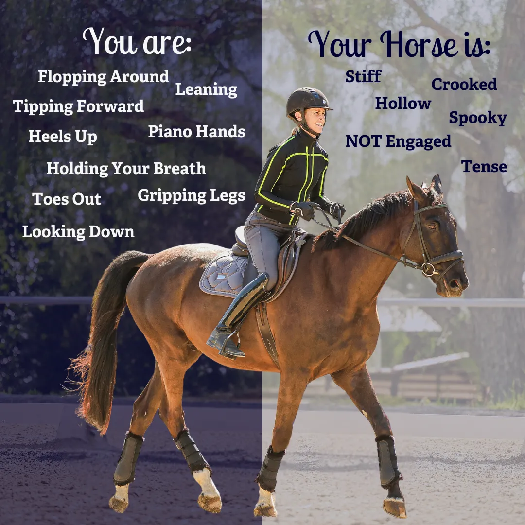 If your horse is tense and nervous → You’re holding your breath and stiff.