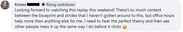 Submit YOUR videos for review and Amelia and Team will guide you! Here’s how “office hours” work: